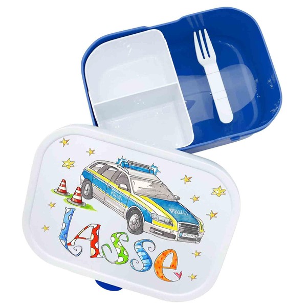Lunch Box with Name, Police, Includes Separation and Fork, Rosirosinchen