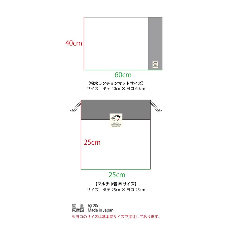 (1) Water-repellent placemat, (2) Multi-drawstring medium set is included.