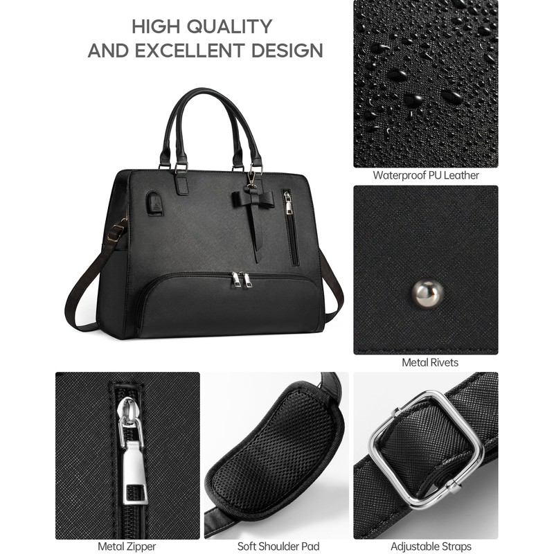 - Multifunctional Laptop Work Bag: This large laptop tote bag measures 12.6"x6.3"x16.5" (LxWxH) and fits a 15.6-inch laptop along with other essentials like documents, books, cameras, and daily items, multiple interior compartments and zippered pockets allow you to better sort your belongings. Whether you're a doctor, nurse, teacher, professional workers or simply need a reliable bag for daily outings, this sleek black tote bag with zipper is an excellent choice!