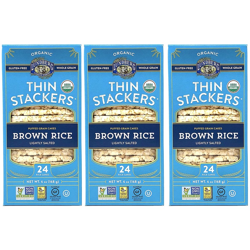 Lundberg Thin Stackers Organic Rice Cakes Lightly Salted Brown Rice Pack of 3 – Non GMO, Gluten-Free, Whole Grain Rice Cakes