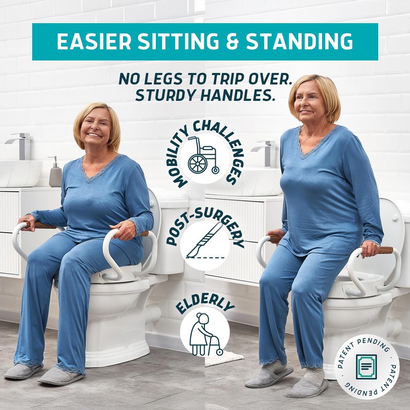 Introducing the Lunderg Raised Toilet Seat with Handles, our round or standard toilet seat riser designed for seniors that adds 3 inches for comfort and ease; this toilet seat riser with arms is easy to install, providing a secure and stable solution for those needing a little extra help, featuring an elegant design that avoids the hospital vibe, making it an ideal choice for a raised toilet seat extender, while the high rise toilet seat for seniors with handles ensures safety and support, perfect for anyone looking for a medical toilet seat raiser with handles or a high toilet seat for seniors, offering the convenience of a toilet lift seat riser and the functionality of toilet extenders for seniors, making it a practical 3 inch addition for after and post surgery or to any handicapped bathroom.