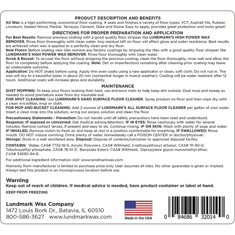 Lundmark All Wax, Self Polishing Floor Wax, 1-Gallon, 3201G01-2