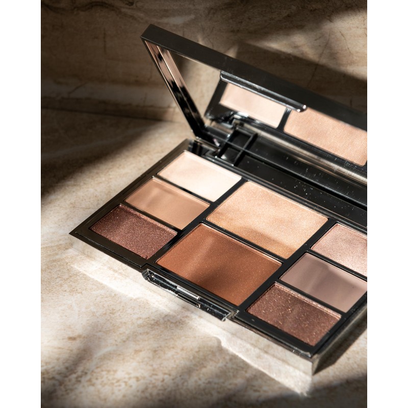 - Features a pearlescent bronzer, soft, champagne highlighter and six matte and shimmer nude eyeshadows.