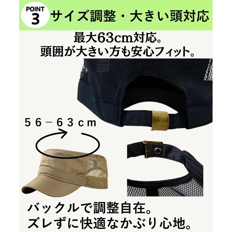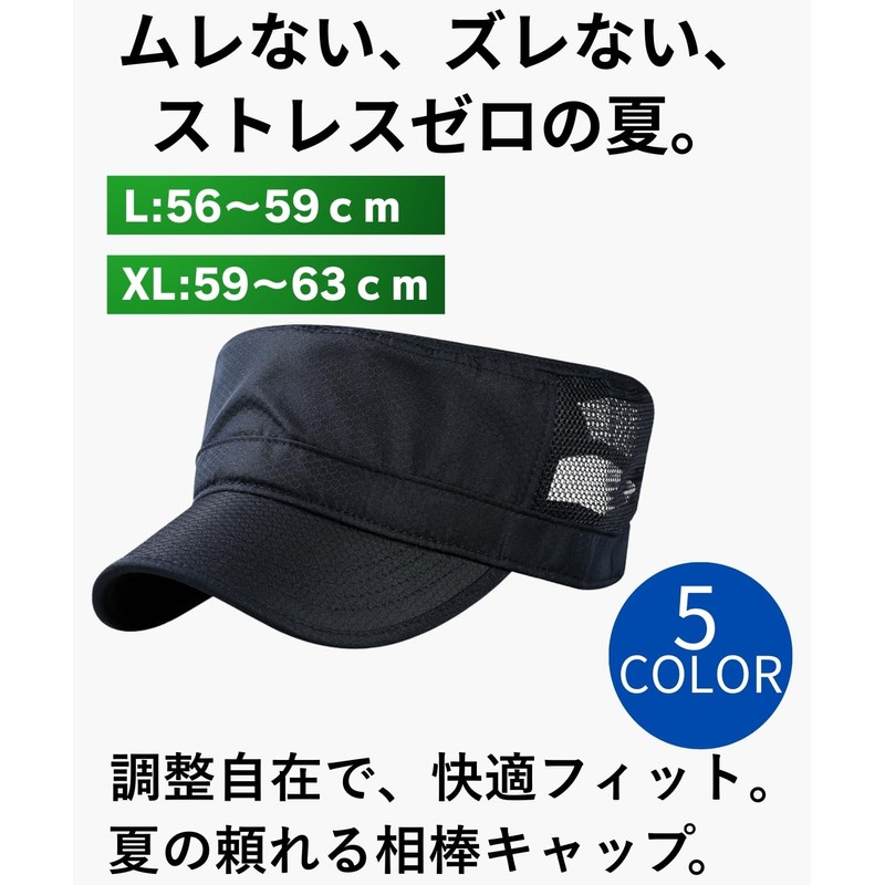 Introducing a mesh type flat top cap that combines comfort and practicality as a must-have item for the hot season. Designed with an emphasis on ventilation, this product is designed to keep you cool and comfortable even when worn for a long time.