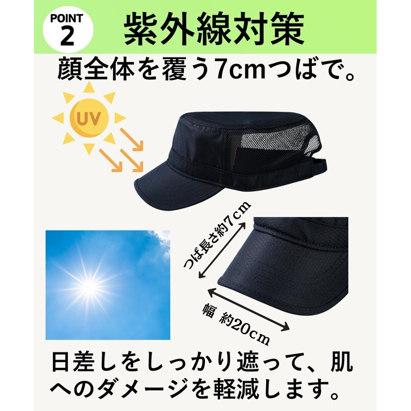 The brim of the hat is 2.8 inches (7 cm). It covers the face area of your face and helps prevent heat stroke while blocking UV rays. It can be relied on in sunny environments such as gardening, fishing, driving, and mountain climbing.