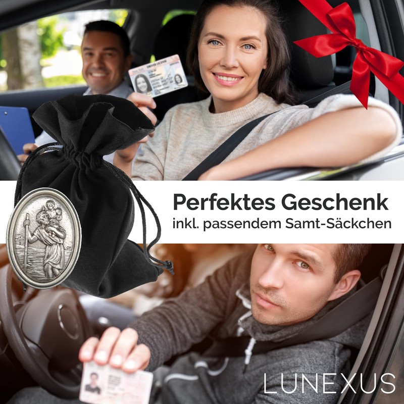 - Perfect gift for drivers, beginners and believers - with elegant velvet pouch: this Christopher magnetic plaque is the ideal gift for drivers, commuters and spiritual people. It comes in a high quality velvet pouch that protects it and serves as a stylish gift box. Perfect as a lucky charm for a new car or as a Christian gift for new drivers. This blessed plaque combines tradition, faith and protection in a timeless design with elegant rope embossing and robust magnetic attachment - a meaningful companion for anyone who wants safety on their paths.