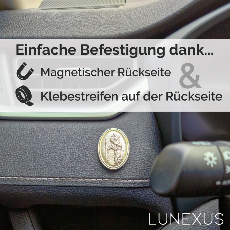 Advantages of the Lunexus Christopher car magnetic plaque: