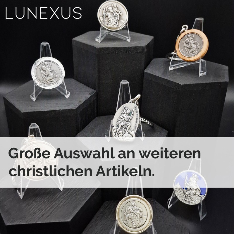 The Lunexus Christopher car magnetic plaque is more than just an accessory - it is a spiritual symbol of protection and safety and a meaningful companion for motorists, motorcyclists and believers. Order your blessed plaque with magnetic attachment and certificate now and experience the protection of Saint Christopher in all your ways.