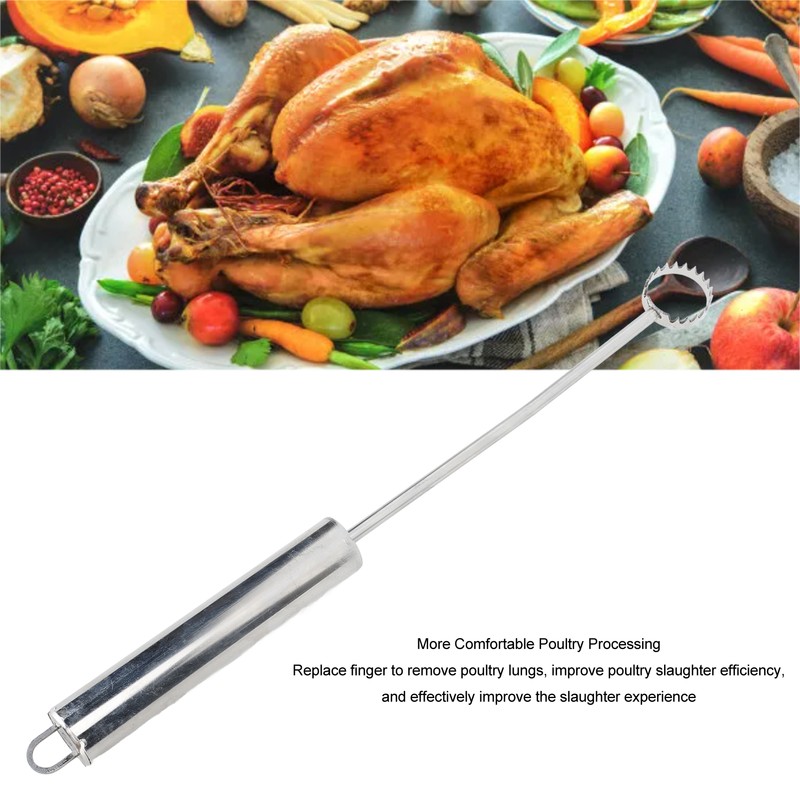 Lung Remover Scraper Stainless Steel Strong Grip Easy to Clean Long Handle Chicken Processing Equipment for Poultry