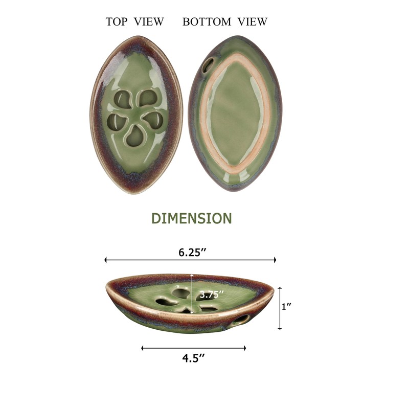 LungMongKol Shop Ceramic Soap Dish with Self Draining Tray for Bar Soap, Bathroom, Kitchen (Green No.2)