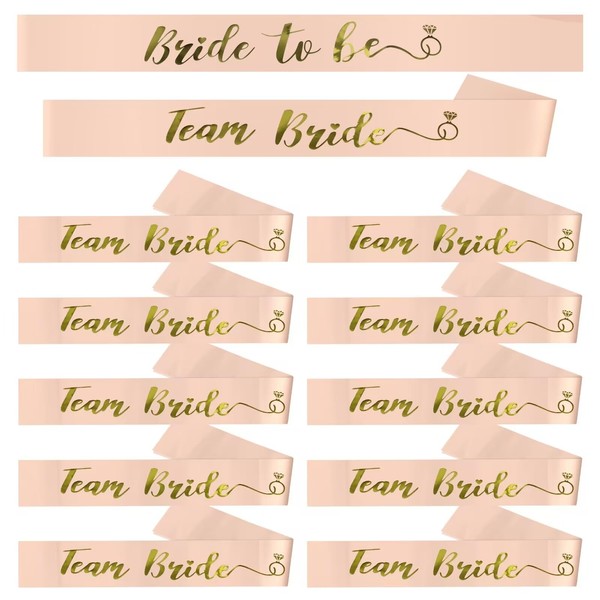 Lunhoo 12 Pack Team Bride Sash Set, Bachelorette Party Sashes, Team Bride Sash for Bridal Party and Wedding Celebrations (Rose Gold)