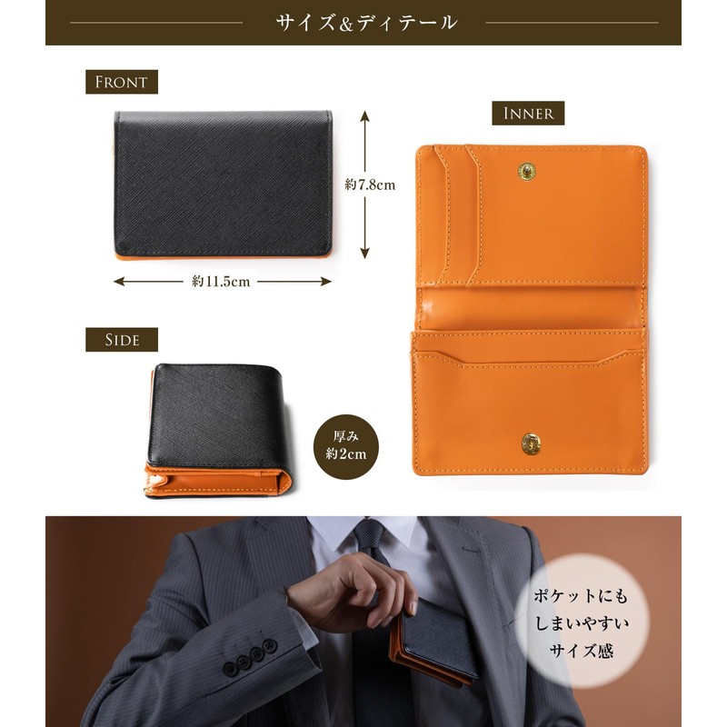 - (Made with the highest quality cowhide leather / Men's genuine leather business card holder) The outer leather is made of saffiano leather. Premium leather with smooth and elegant camel lining. The outer and inner leather are a complex and hassle-free manufacturing method, but we carefully hand sewing and finishing each one by one by one by our skilled craftsmen who receive orders from high-quality brands
