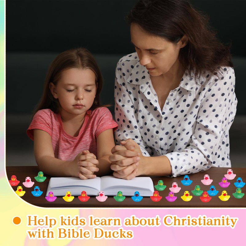 - Embracing Christian Values: designed with a strong Christian ethos, each duck bears the bible verses, like [Jesus Loves You], [God Bless You] upon their chests, symbolizing faith towards God and steadfast commitment to Christianity; The vivacious blend of red, yellow, blue, green, pink, and purple, adds color and cheer to your daily bathing routine, making these ducks a symbol of joy and faith