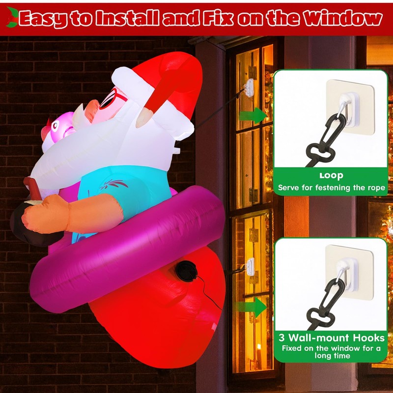 - Built In LED Lights: our blow up Christmas decoration comes with LED lights built inside to light up your window at night, making it easy to attract your family, neighbors, and guests; Install this Christmas holiday inflatable and spread holiday cheer to your neighborhood