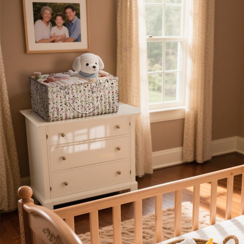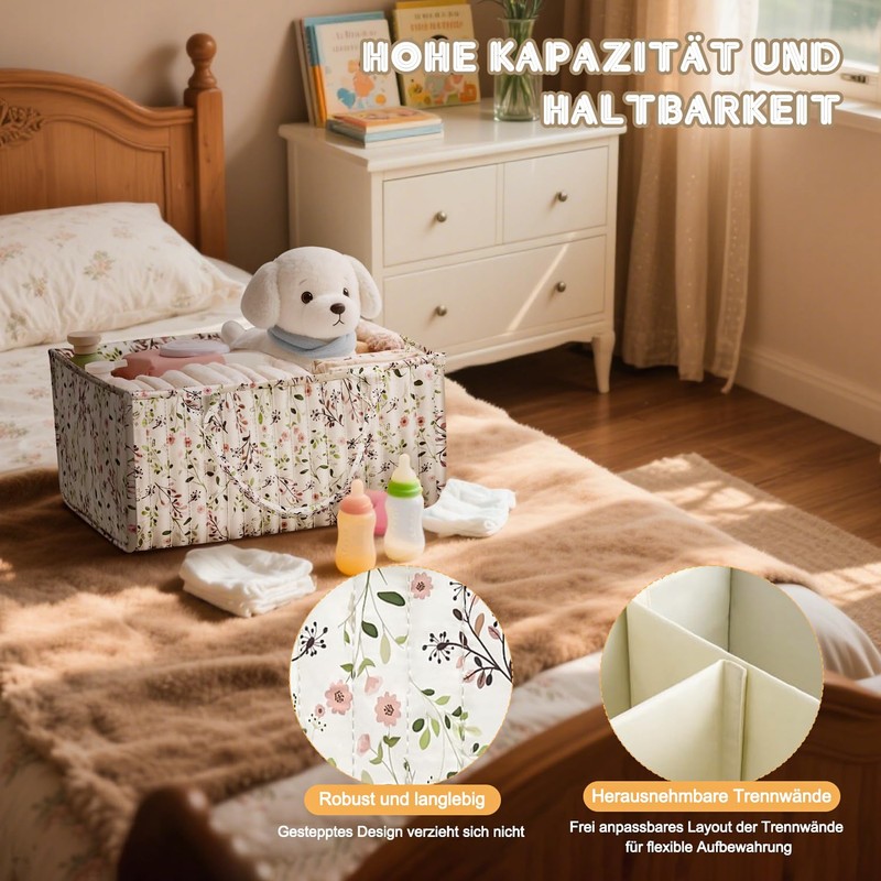 Lunriwis Floral Changing Table Organiser, Baby Changing Table Organiser, Nappy Bag with Compartments and Handles, Newborn Baby Essentials, Gift Basket for Changing Children