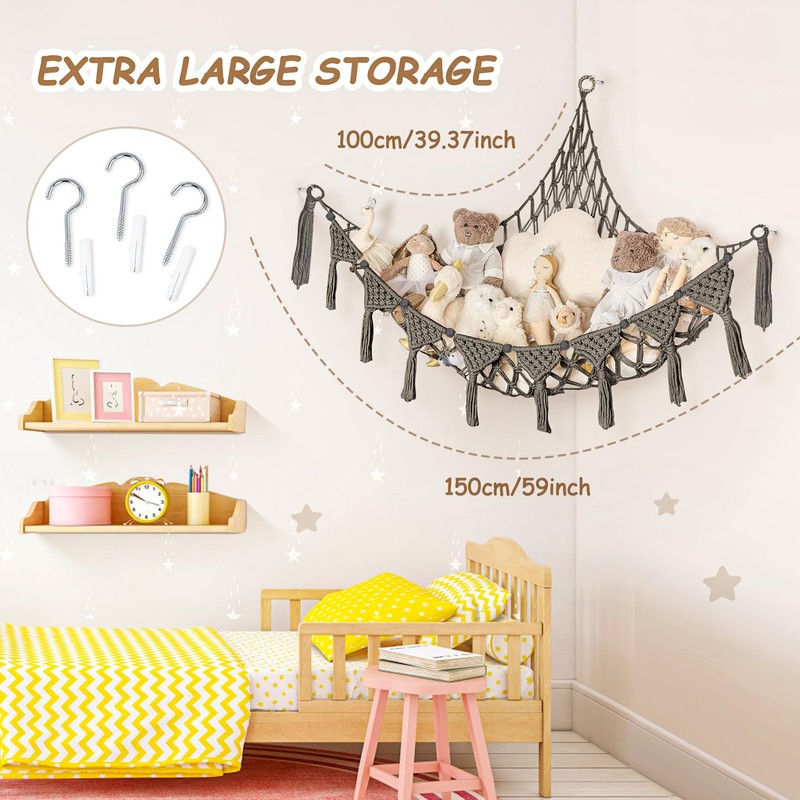 - Easy installation: the cuddly toy storage of toys comes with 3 fasteners and hooks for easy hanging. It does not take up extra space and does not require additional accessories, so you can quickly achieve tidy storage of toys.