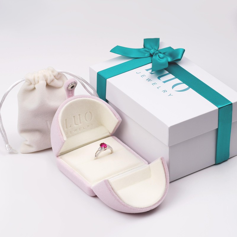 - MATERIAL----Main stone: 2.32 ct Ruby(9×7mm), ----Accent stone: cz,----Metal: sterling silver plated with rhodium,----Color: Red,----Birthstone:July Birthstone,----Anniversary gems:15th,40th,80th Anniversary Gemstone