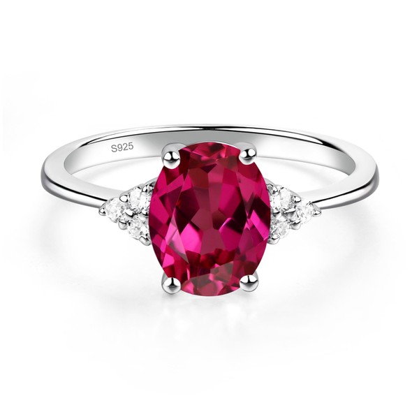 LUO S925 Sterling Silver Oval Shaped 2.32 Carats Created Ruby Ring Promise Ring Engagement Ring July Birthstone Ring for Women US Size 8