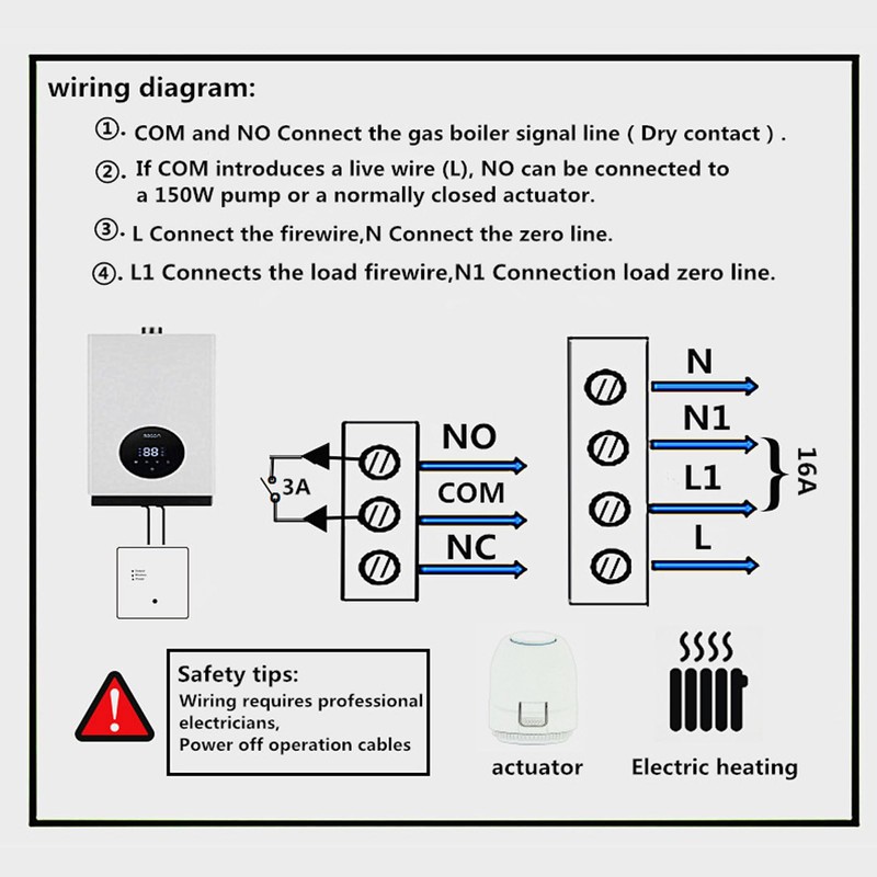 - Remote Smart APP Control: Connects with the APP for Tuya, allowing users to remotely control the programmable thermostat from their smartphones, adjusting indoor temperatures anytime, anywhere for a personalized experience.