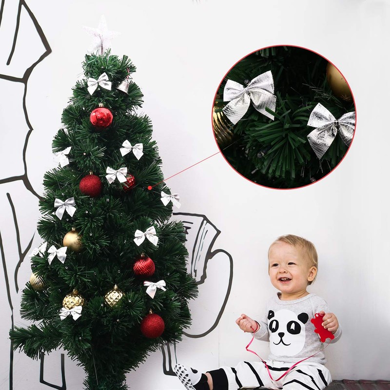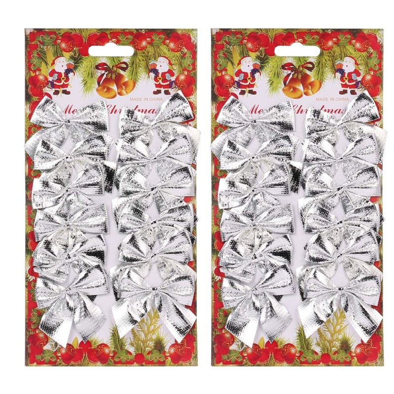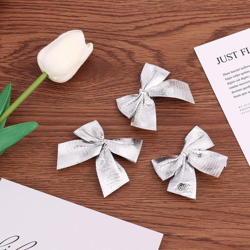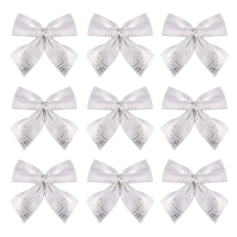 LUOEM Pack of 24 Small Silver Christmas Tree Bow Ties