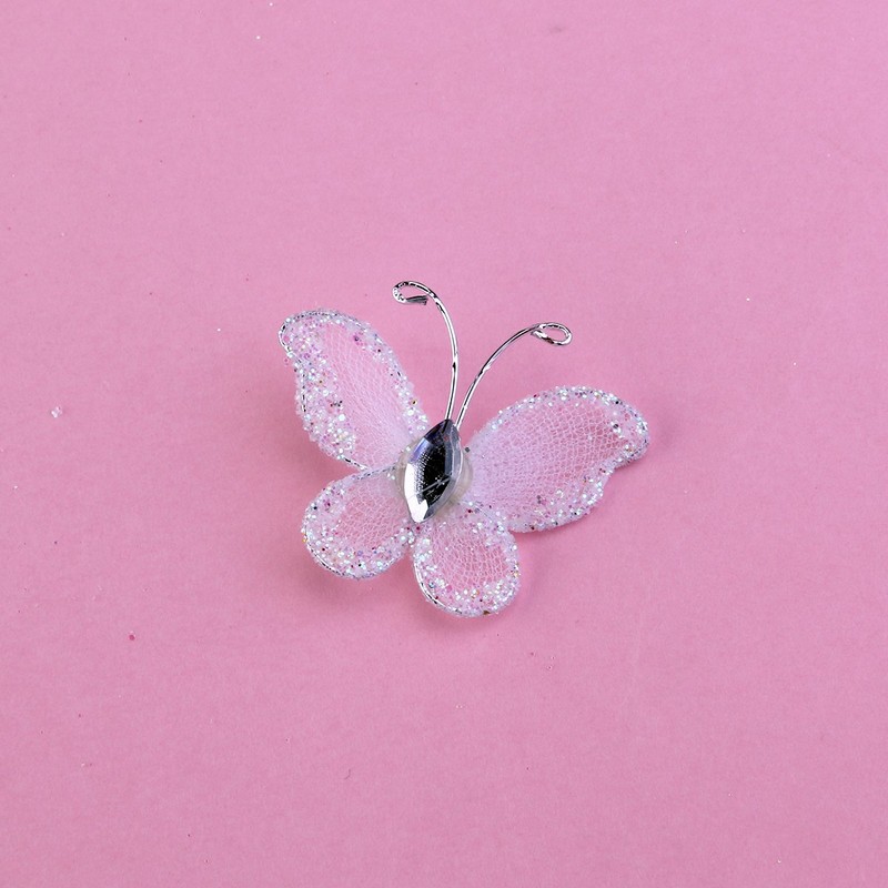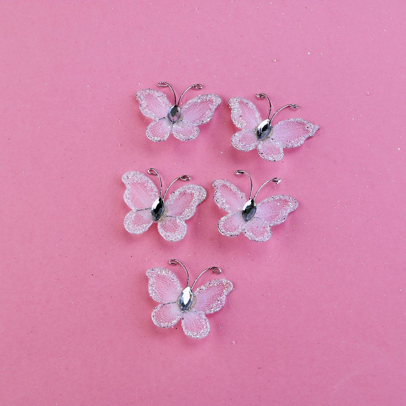 50 x sheer mesh wire glitter butterfly with gemstone (white)