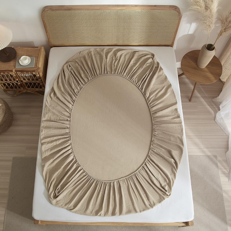 Luofanfei Fitted Sheet 200 x 200 cm Muslin Cotton Khaki Taupe Box Spring Bed Terry Cloth Topper Soft Plain Breathable Bed Sheet for High Mattress up to 25-30 cm