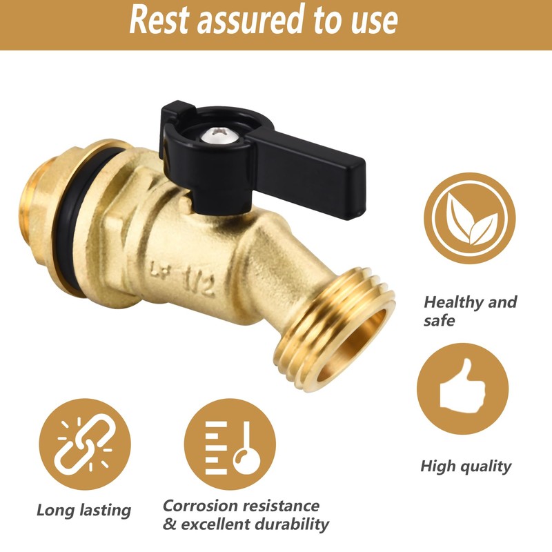 - 【High quality brass rain barrel Spigot】: inlet end :1/2 "outlet end :3/4" thread. Note: You need to go inside the container to install the nut.