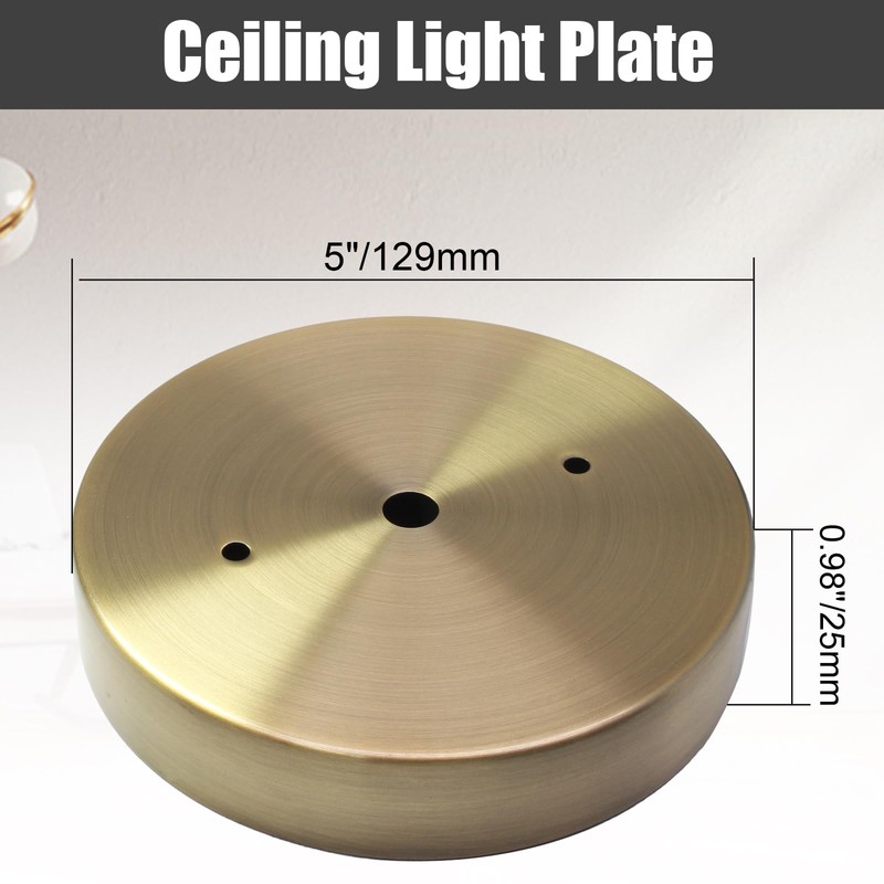 Feature:The ceiling light canopy kit is widely used for DIY projects, indoor pendant light, ceiling light, chandelier, wall lamp, hanging lamp and etc.Specification:Diameter: 5"/129mmHeight: 0.98"/25mm2 Side Mounting Hole Spacing: 2.75"/70mmMaterial: MetalColor: BrassQuantity: 1 Set