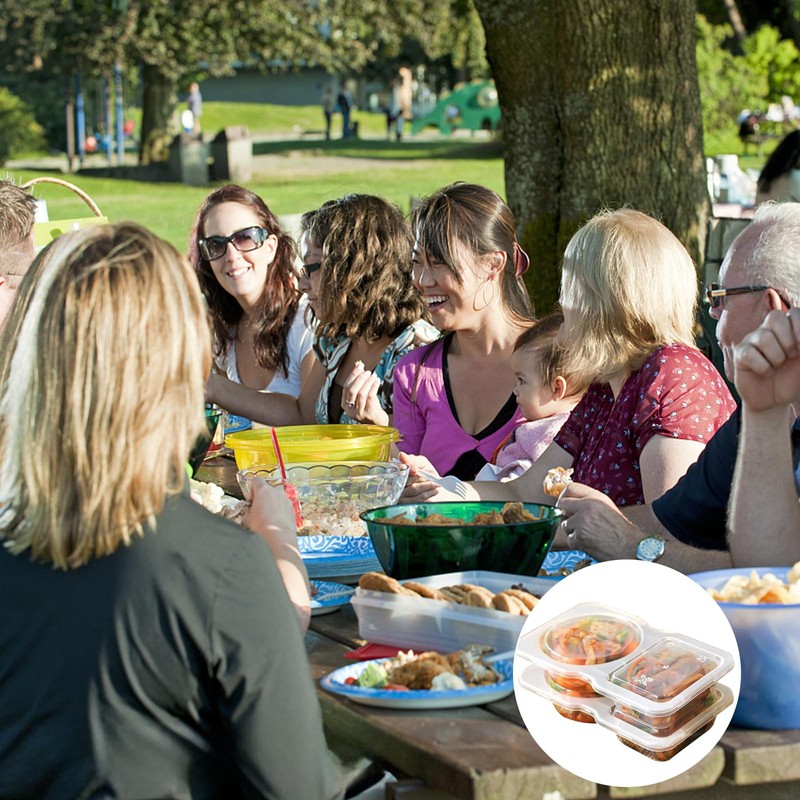 - 【Versatile Use】The double snack box with lid is ideal for storing side dishes, sauces, salad dressings, condiments, snacks, or desserts. It can also be used to store paints, small parts, or craft supplies, making it ideal for outings, work, school, or travel.
