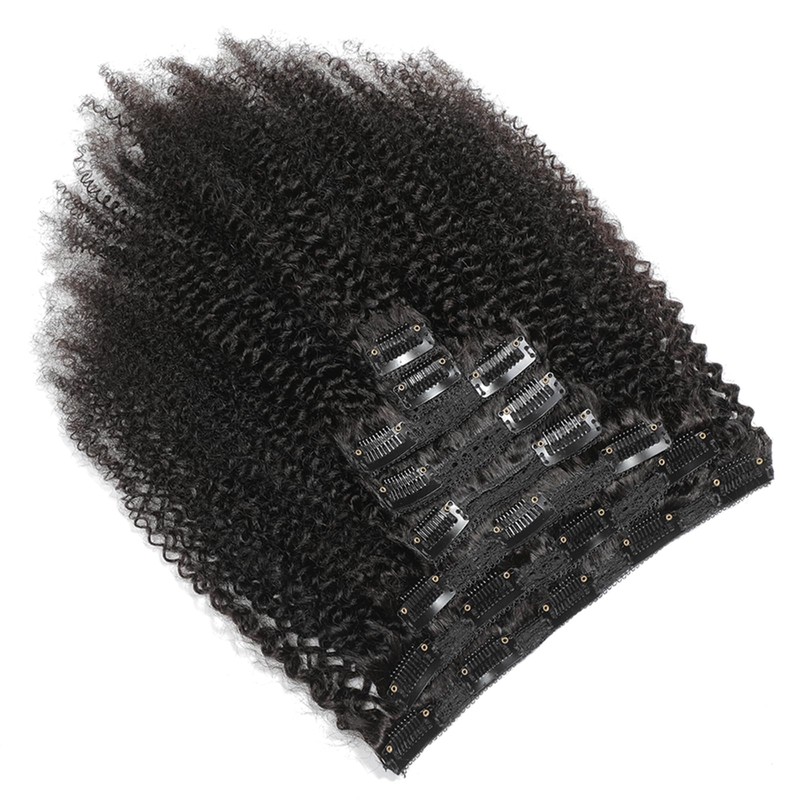 Luovce Clip in Hair Extensions Real Human Hair Afro Kinky Curly 3c4a Tight Curl Natural Colour 8PCS 115-120 Grams 18 inches