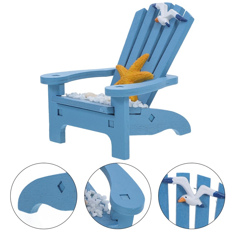 LUOZZY Miniature Beach Chair Figurines Nautical Beach Chair with Starfish Model for Dollhouse Beach Themed Decorations (Small Blue)