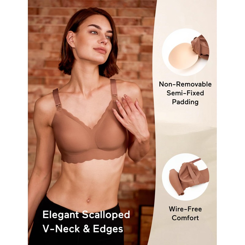 - Elegant Scalloped V-Neck & U-Back: Combines a scalloped V-neck and U-shaped back for a stylish, supportive fit. Perfect for daily wear, this nursing bra adds a touch of elegance to everyday comfort.
