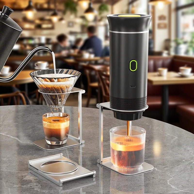 - Multifunktionales Design:Das 3-in-1-Design dieser Tragbaren Elektrischen Kaffeemaschine ermöglicht es Ihnen, den Brühkomfort jederzeit und überall zu genießen! Geeignet für kleinen Kapselkaffee, großen Kapselkaffee und gemahlenen Kaffee