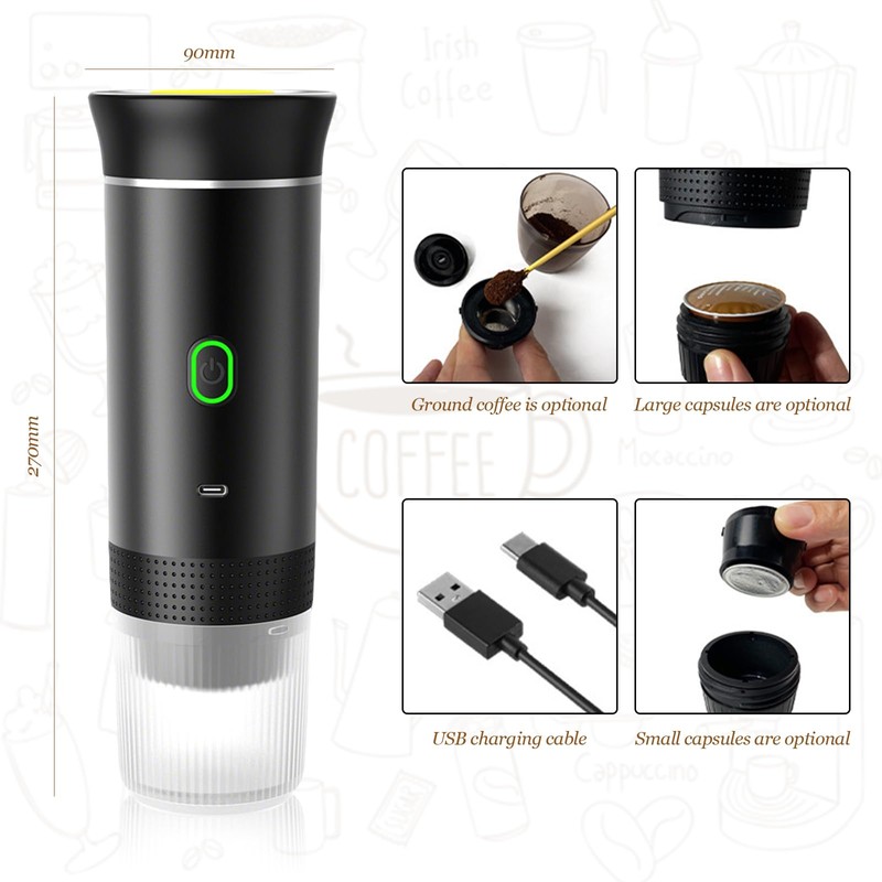 LUPATDY Kapsel Kaffeemaschine,Tragbare Kaffeemaschine,Camping Espressomaschine mit Akku,3 in 1 Reisekaffeemaschine, Kaffeemaschine to go,für Büro, Reisen, Camping, Haus (Schwarz)
