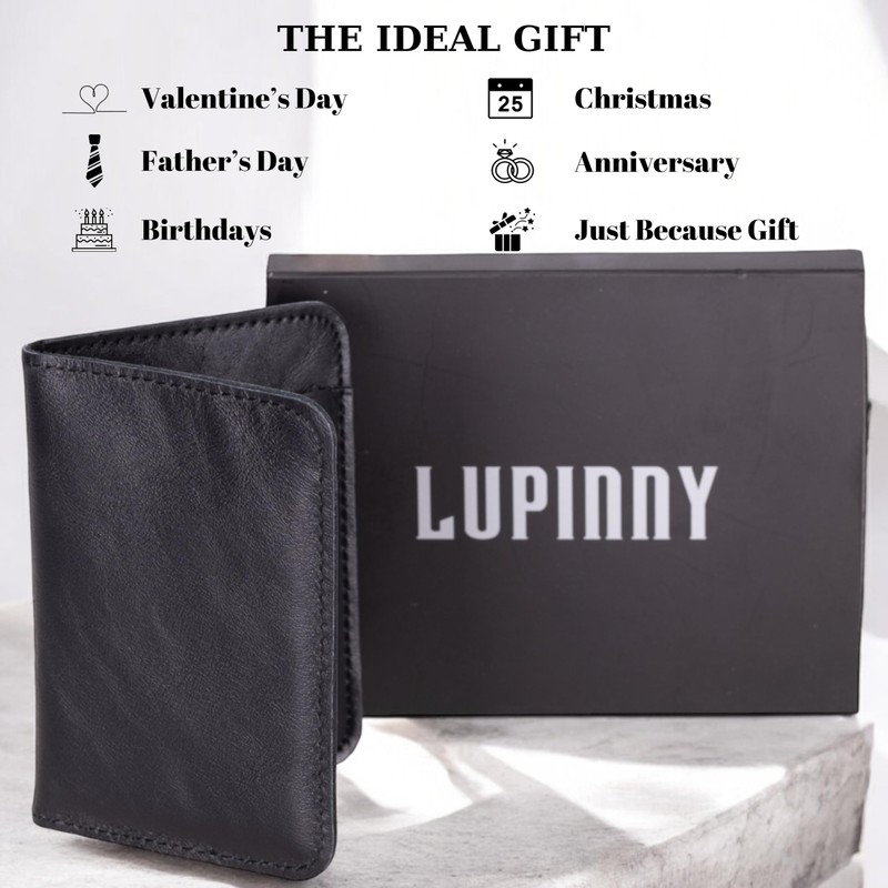 Lupinny Leather Slim Wallet, Credit Card Holder, Bifold, Minimalist, Front Pocket, Small Thin, Travel Wallet for Men and Women (Black)