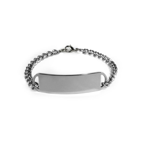 • The Medical Id Plate 1-5/8" x 1/2" is made from non-allergic, rust free stainless steel, polished to a mirror finish and curved for wrist wear.