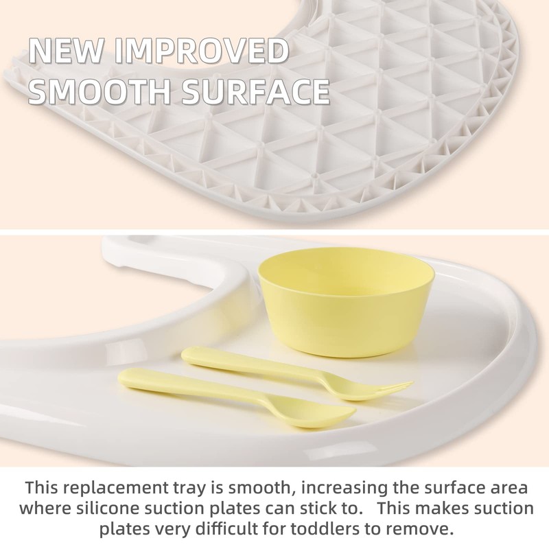 - NEW IMPROVED SMOOTH SURFACE: Instead of the textured surface of the stock tray, this replacement tray is smooth, increasing the surface area where silicone suction plates can stick to. This makes suction plates very difficult for toddlers to remove.