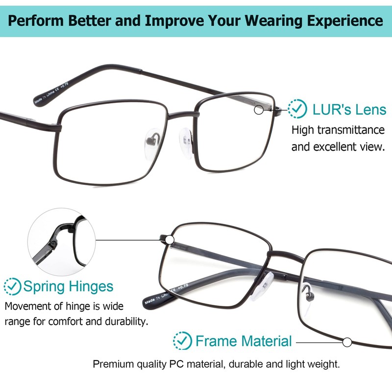 LUR READING GLASSES 6 pack Metal Readers for Men