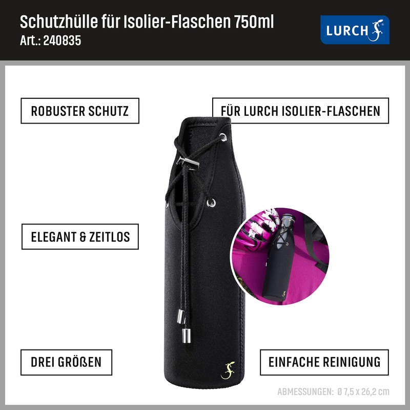 Lurch 240835 Insulated Case Accessory for Stainless Steel Bottle Black Neoprene 1L