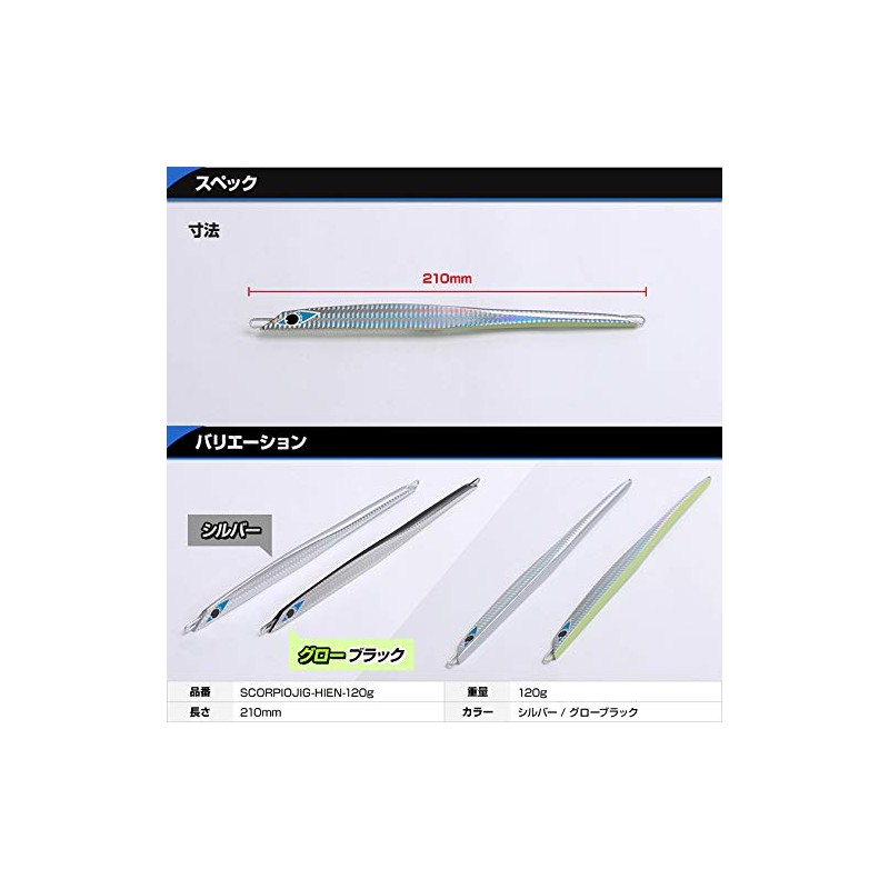 ■ Scorpio Metal Jig, Yuyanza, 4.2 oz (120 g), our president of over 20 years of fishing experience has created the material and design of this original jig with further improvements.