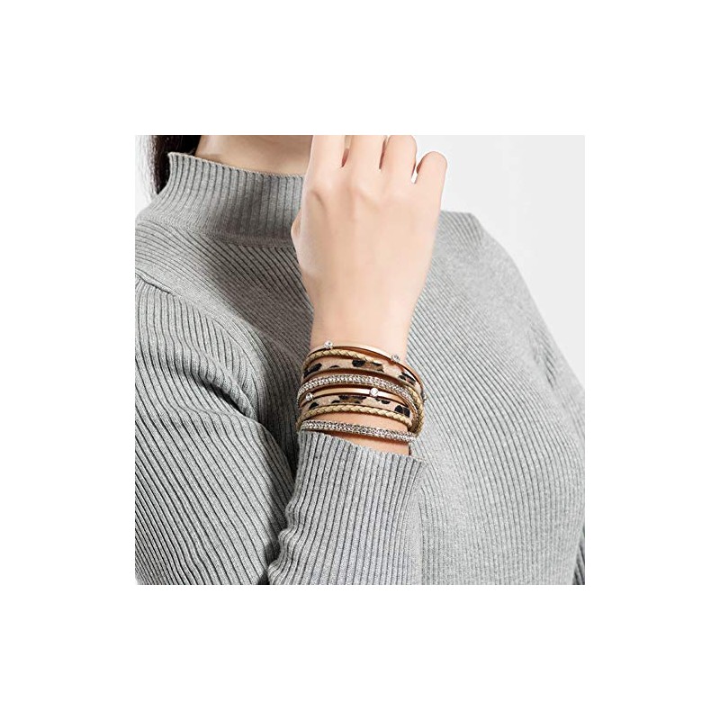 lureme Leather Leopard Wrap Bracelet with Rhinestones Magnetic Clasp Bracelet for Women (bl003513-4) Khaki