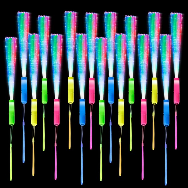 LURICO Fibre Optic Glow Sticks, Pack of 24 Light Sticks, Party Accessories, LED Light Sticks, Fibre Optic LED Light Sticks, Colourful Flashing LED Light Sticks, 3 Modes Flashing, for Party Bags,