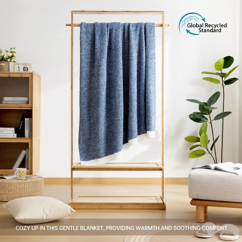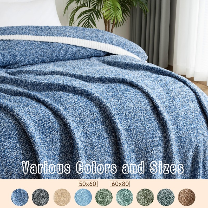 LURKA Fine Knit Throw Blanket - Super Soft Breathable Lightweight Blanket for Couch Bed Sofa (Riverside Blue, Throw(50"x 60"))