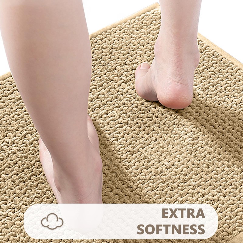 - Absorbent: The bathroom rug is made of upgraded chenille microfiber fabric, the chenille bath mat provides a greater contact area with your feet and is ultra-absorbent to minimize water stains on your bathroom floor. It also protects your feet from cold floors.