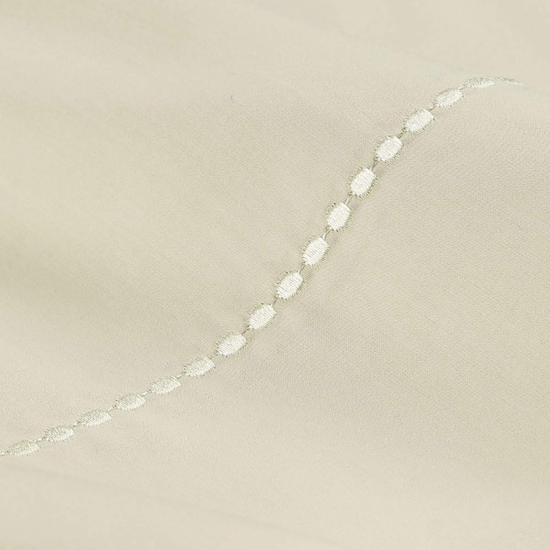• This set includes 1 flat sheet, 1 fitted sheet, 2 pillowcases and 2 extra pillowcases (King pillow cases measure 20"x40"/Queen pillow cases measure 20"x30"). Every piece is 100% 300 thread count sateen cotton. Machine wash safe, please refer to the label insert for full care instructions.