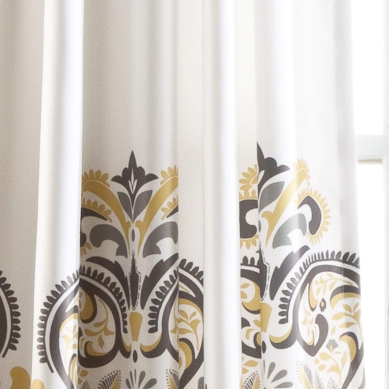 Lush Decor Clara Curtains Paisley Damask Print Bohemian Style Room Darkening Window Panel Set for Living, Dining, Bedroom (Pair), 84" x 52", Gray & Yellow