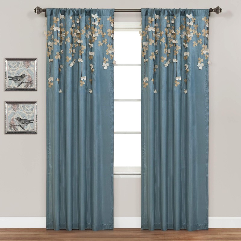 Lush Decor Flower Drops Window Curtain Single Panel, 95" L x 42" W, Blue