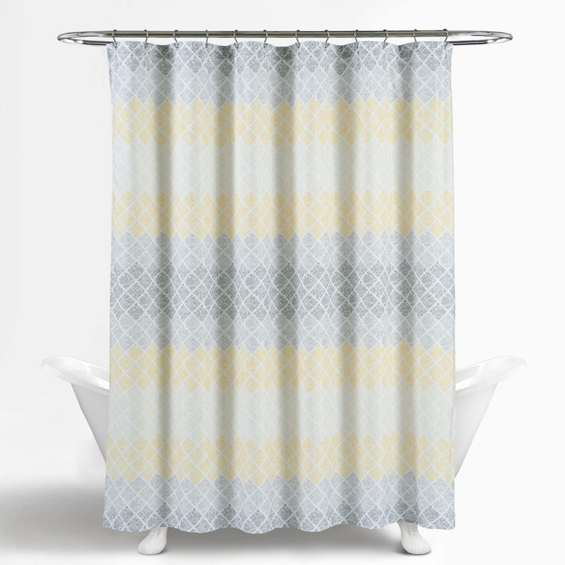Lush Decor Medallion Ombre Shower Curtain, 72" x 72", Yellow & Gray