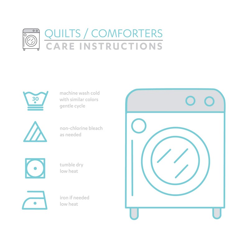 - Both quilt and shams are easy to care for and safe to machine wash, gentle cycle and tumble dry.