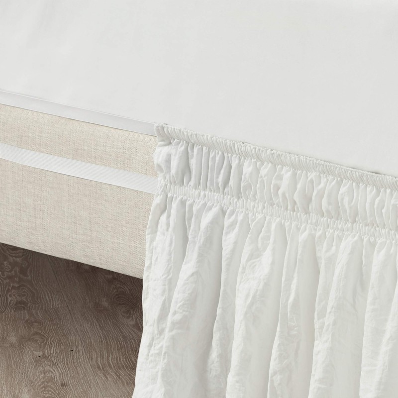 - Instead of going under the mattress, it goes around the mattress. The elastic band will keep the bed skirt in place until it’s time for cleaning, and then it will easily install once again when it’s fresh and ready.